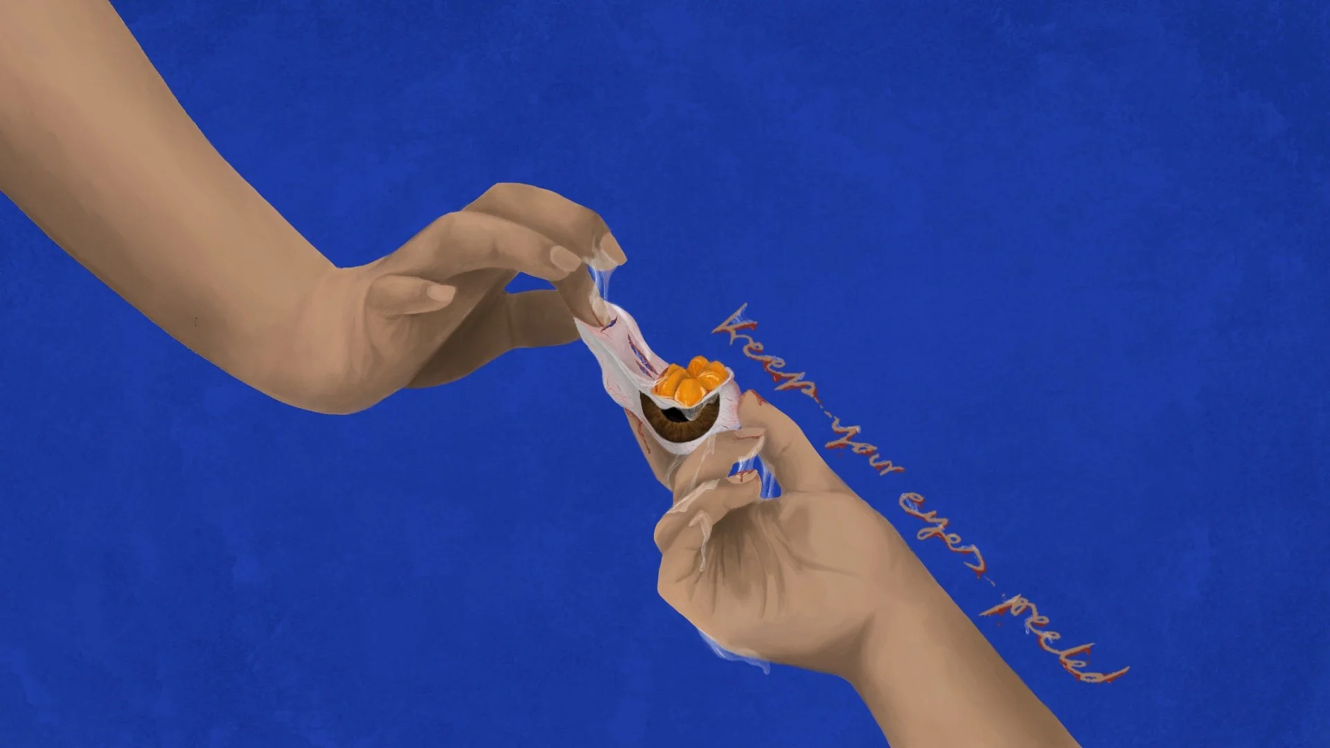 As a part of the idiom illustrations series, this piece represents the literal visualization of the idiom “Keep your eyes peeled”.