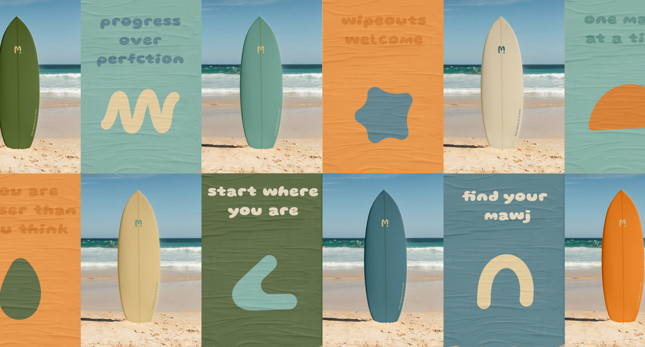 Mawj is a beginner friendly surf brand lowering the barrier of entry for all. In Arabic, “Mawj” is the singular word for wave. We chose the singular form in order to express simplicity and starting with one wave at a time. This friendly approach is designed to make beginners feel comfortable starting their surf journey with no judgment.