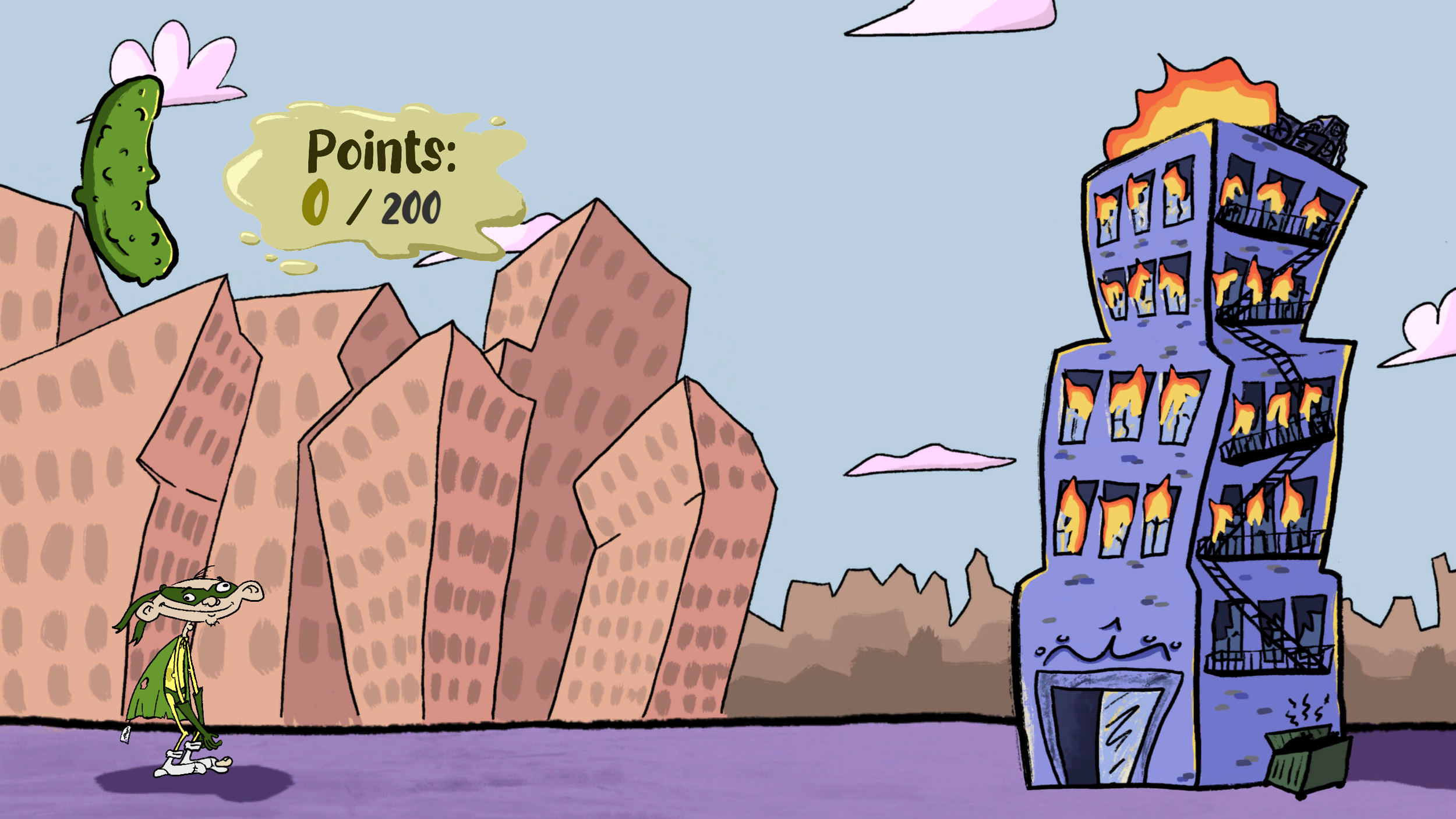 Dill is an aspiring superhero with a habit of getting in a pickle and making situations worse - this time, he's attempting to stop a fire from spreading! Help him out and watch the chaos unfold.